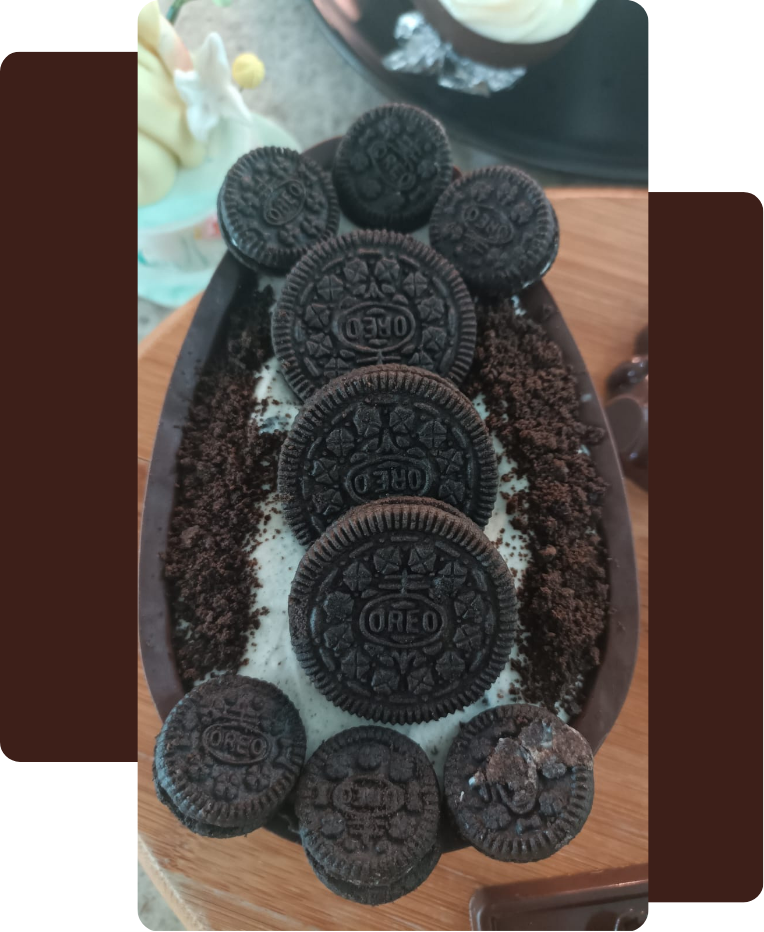 Comecei na confeitaria em 2018 por recomendação médica, pois passava por um momento difícil. Encontrei nos doces uma paixão e uma forma de transformar minha vida. Comecei com brigadeiros, depois bolos, e com o nascimento do meu neto me aprofundei no mundo dos doces personalizados.